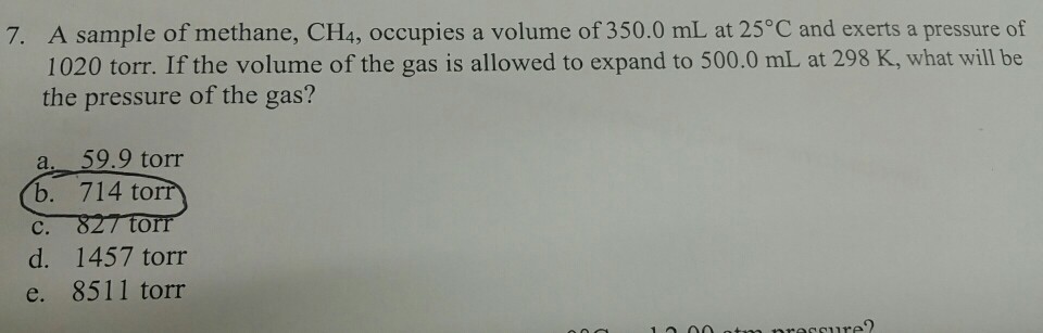 Indicate which diagram represents the volume of the gas sample in a balloon when each of the What volume will 30.0 g of methane gas (CH 4) A sample of gas occupies 855 mL at 1.20 atm and 18 ° C. ... Read Full Source